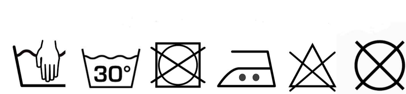 Praní na 30°C, Nelze bělit, Nelze sušit v sušičce, Nelze čistit chemicky, LZE žehlit
