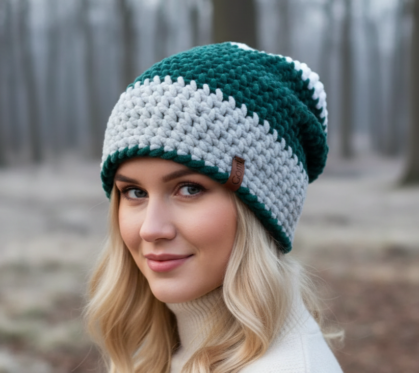 Zahřejte své zimní dny s naší kvalitní háčkovanou čepičkou z měkké žinylkové příze.
