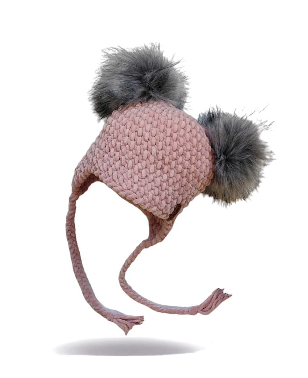 Háčkovaná ušanka s dvěma bambulema